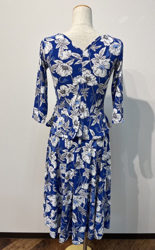 スカートはクルクル回った時に綺麗になるように3/4フレアーを取ってあります。