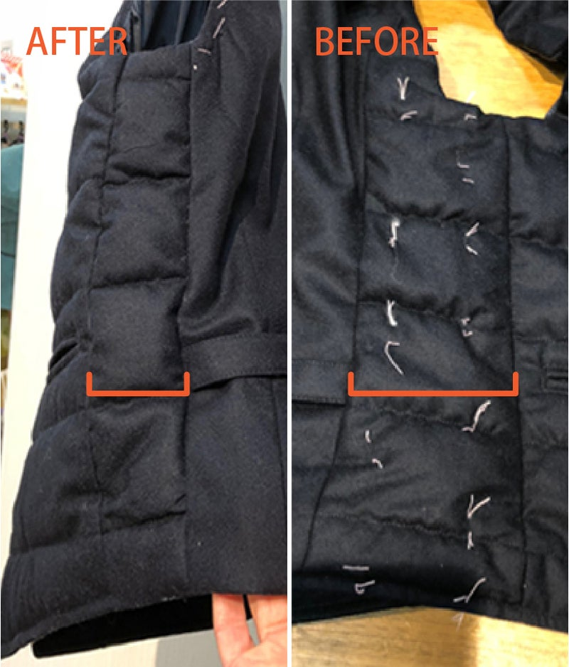 今日はそんな薄手のダウンベストのサイズリメイクのご紹介。