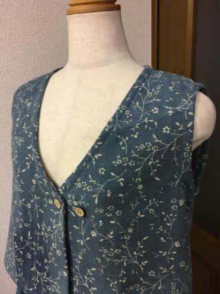 2016.12.17 リメイク・カスタマイズ スカートをリメイク 綿のギャザースカートをベストとオーバースカートに ギャザーといえども要尺はぎりぎりです。肩にヨークの切り替えををいれ、袖ぐりはつぎはぎバイヤス加工になりました。 前の記事へ 次の記事へ 一覧へ戻る