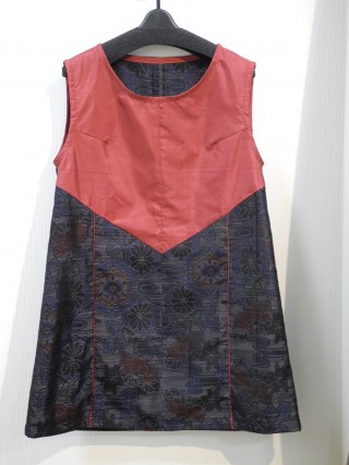 2016.01.10 リメイク・カスタマイズ オーダー 大島着物一反分 着用されていた大島着物をチュニックとキュロットパンツにお仕立てしました 着物はあとおくみ部分が残っているだけです チュニックは全体に地味なので赤みがほしいとのことで裏地の赤を切替とパイピングに使いました。 後はシンプルです 前の記事へ 次の記事へ 一覧へ戻る