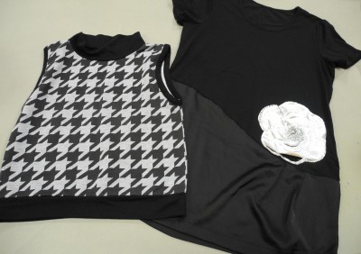 2015.09.28 リメイク・カスタマイズ リメイク→2枚使って1枚のチュニック 半袖チュニックとベストの2枚で1枚のチュニックに変身です。 チュニックはノースリーブで花の飾りを取りたい、ベストは少々小さいとのことでした。 ベストは張り付けになりましたが身幅をそのままにしハイネックインナーが着用しやすいように衿も無しになりました。 前の記事へ 次の記事へ 一覧へ戻る